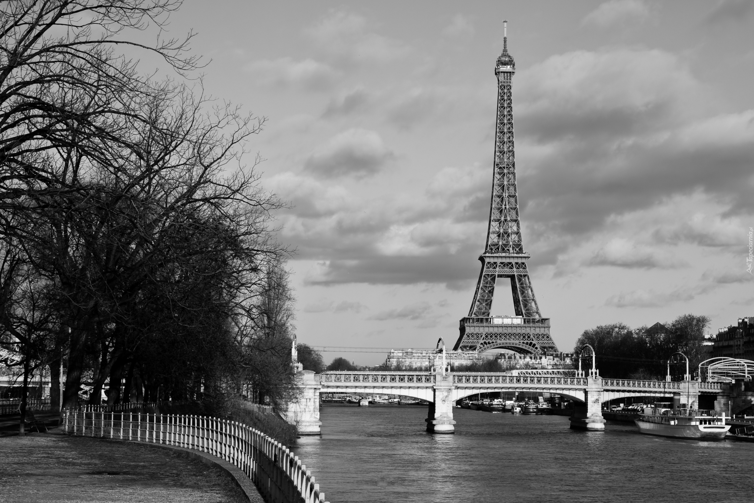 Edytor tapety: Widok na most i Wieżę Eiffla