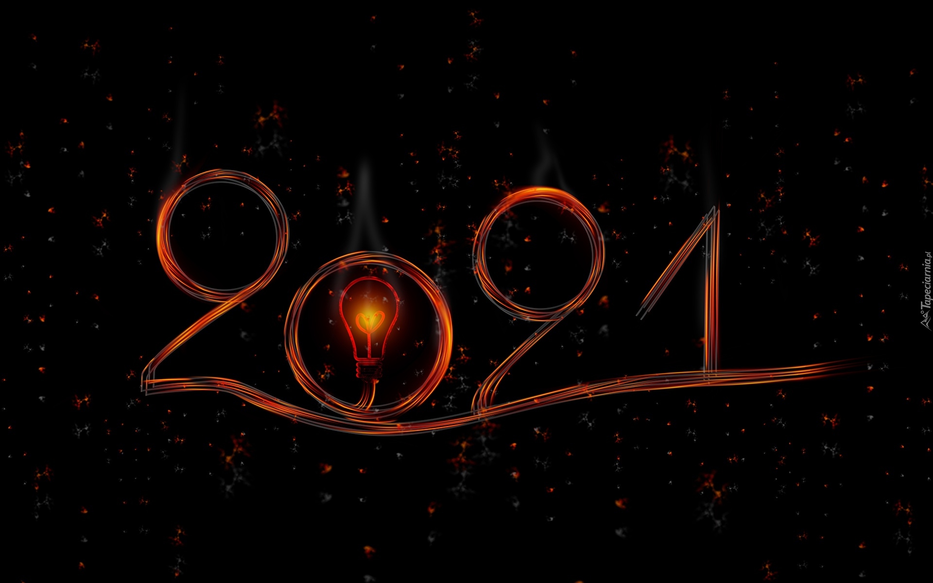 Edytor tapety: Żarząca się żarówka w napisie 2021