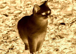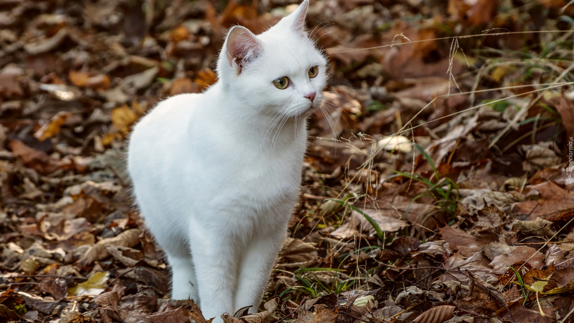 Edytor tapety: Biały kot w suchych liściach