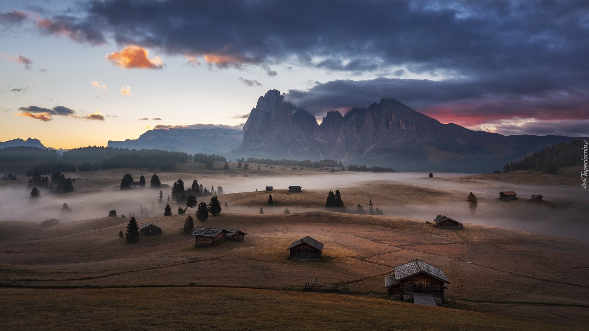 Edytor tapety: Płaskowyż Seiser Alm we mgle
