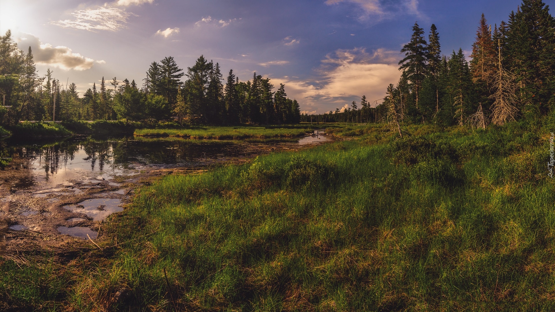 Edytor tapety: Trawy nad leśnym stawem