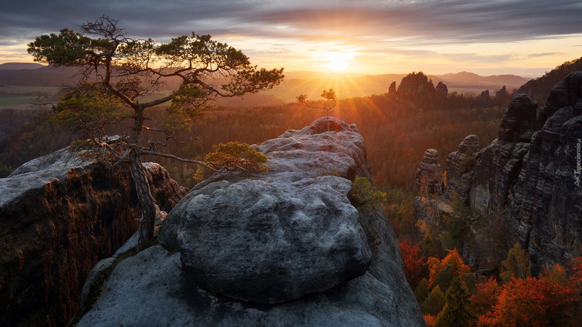 Edytor tapety: Wschód słońca nad Górami Połabskimi