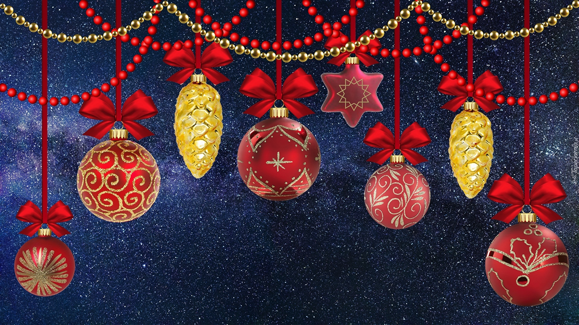 Edytor tapety: Kolorowe bombki zawieszone na koralikach