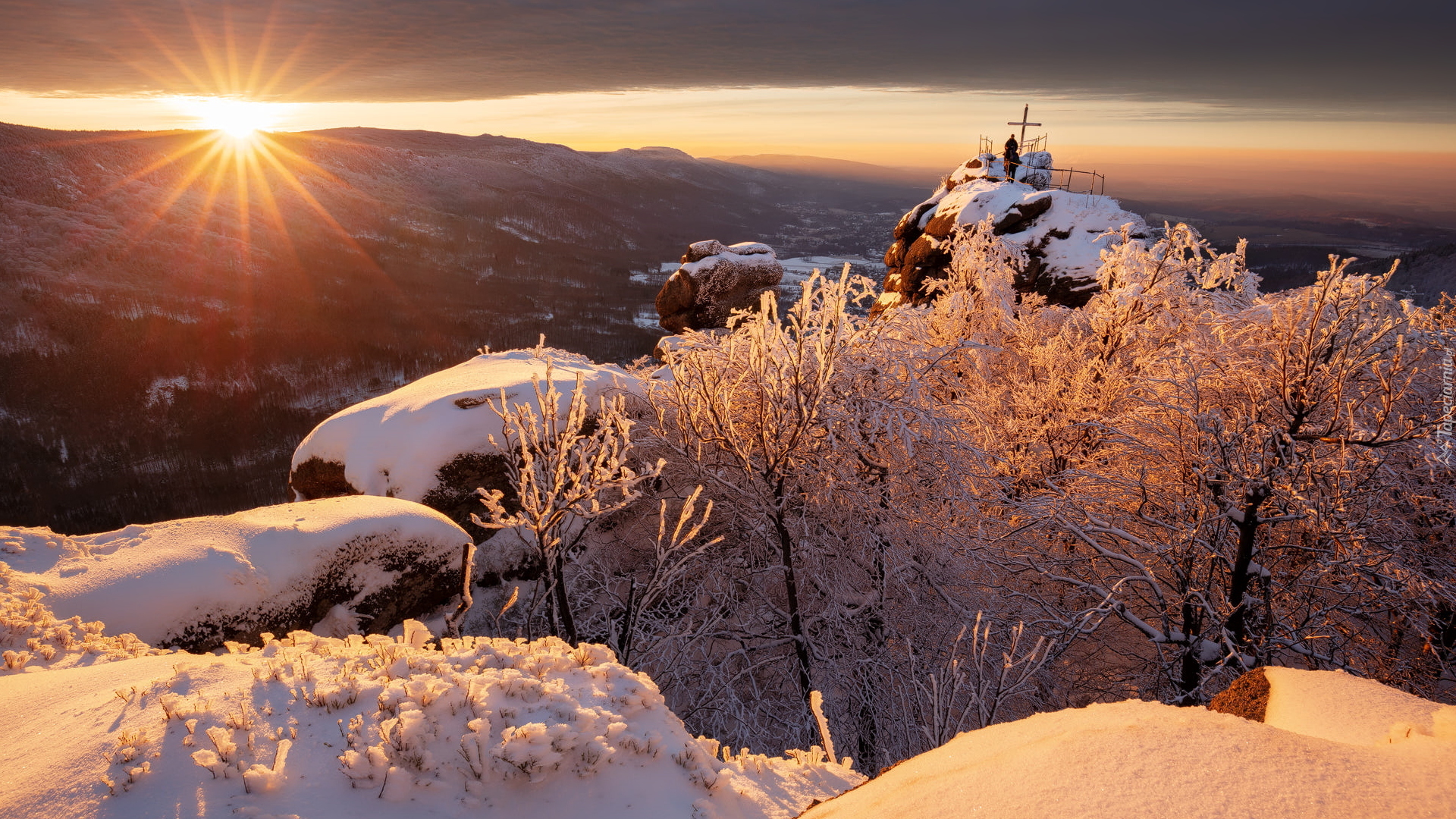 Edytor tapety: Ośnieżone Góry Izerskie w promieniach słońca