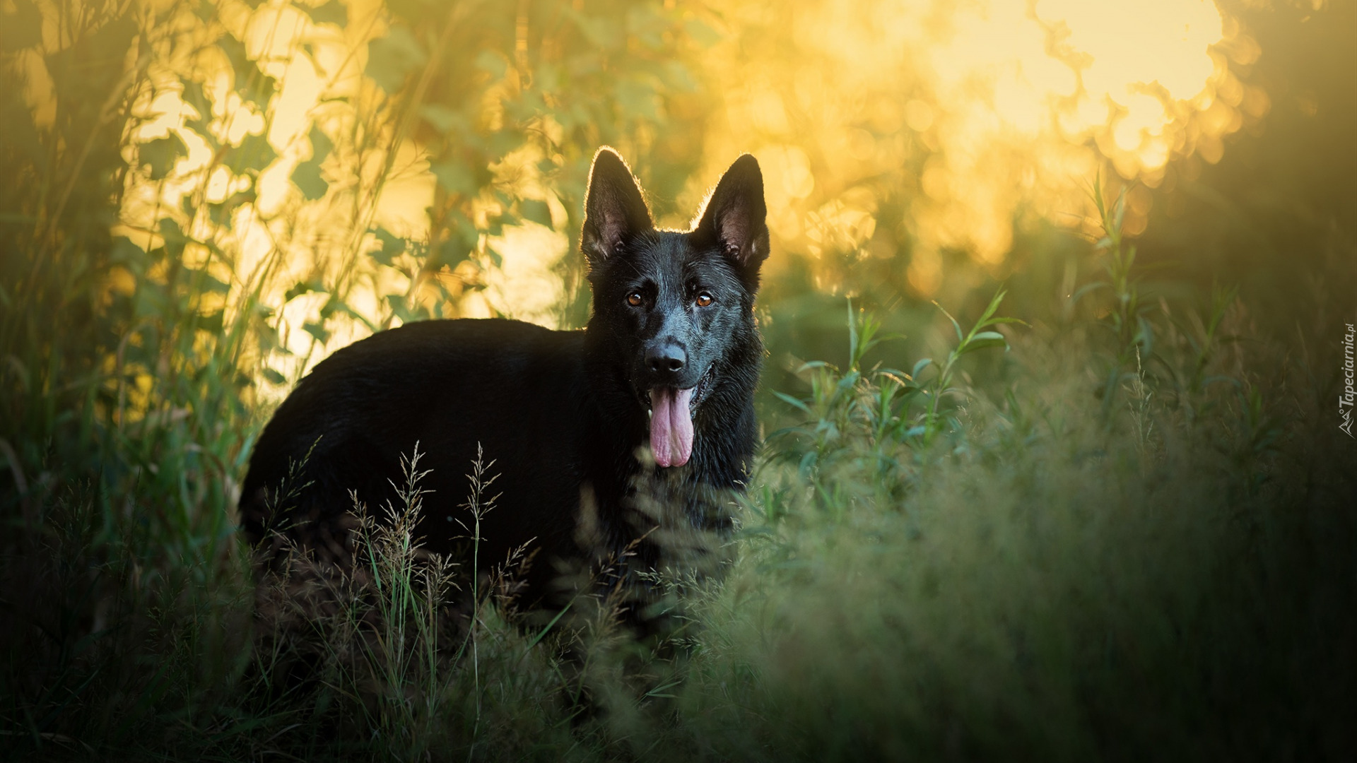 Edytor tapety: Czarny owczarek niemiecki w trawie