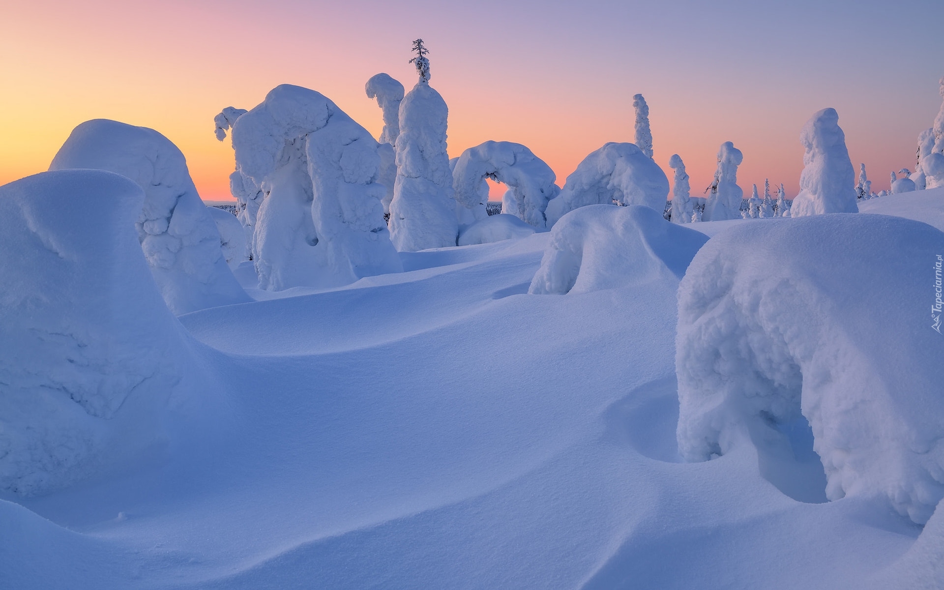 Edytor tapety: Ośnieżone drzewa w śniegowych zaspach
