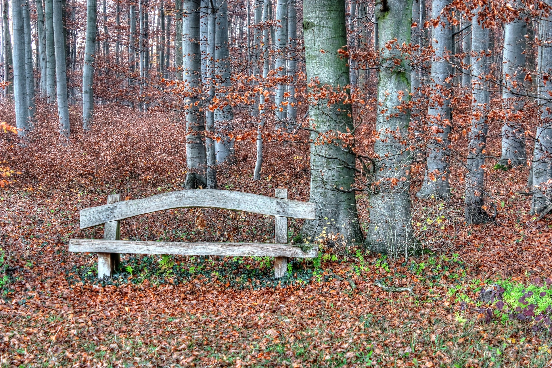 Edytor tapety: Ławka pod drzewami w jesiennym lesie