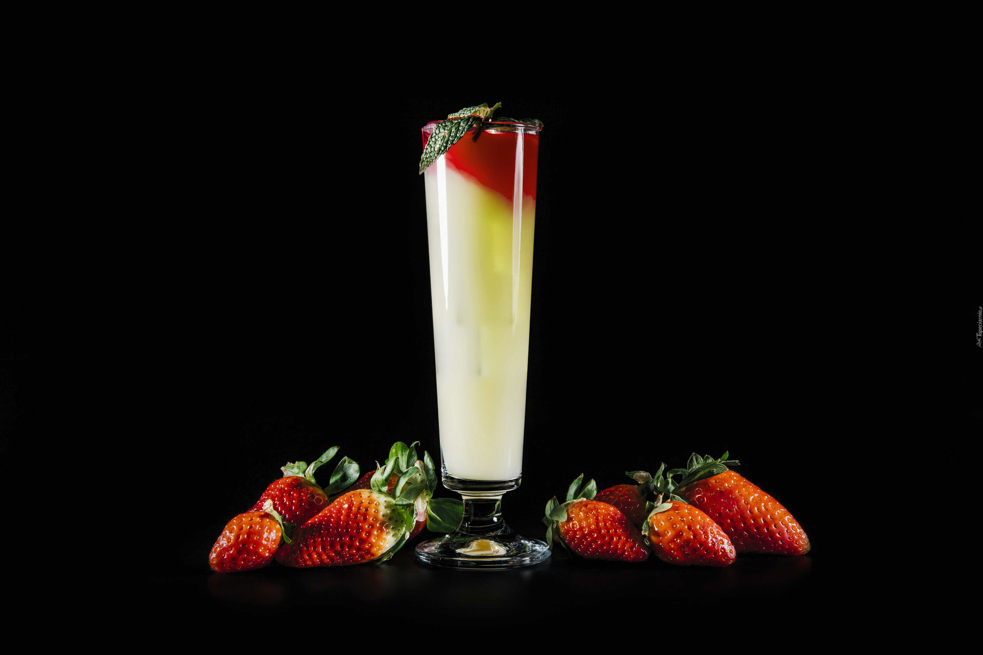 Edytor tapety: Koktajl i truskawki na czarnym tle
