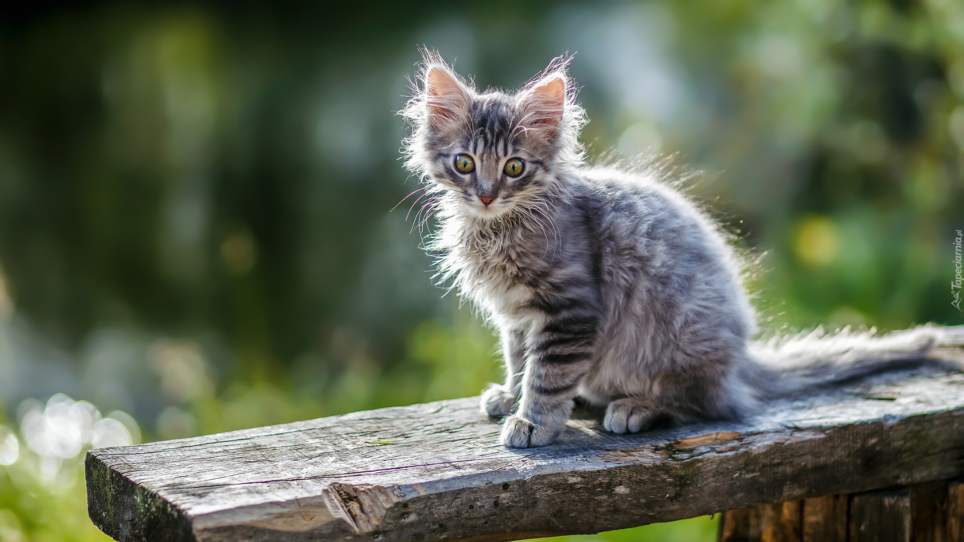 Edytor tapety: Mały szary kotek na desce