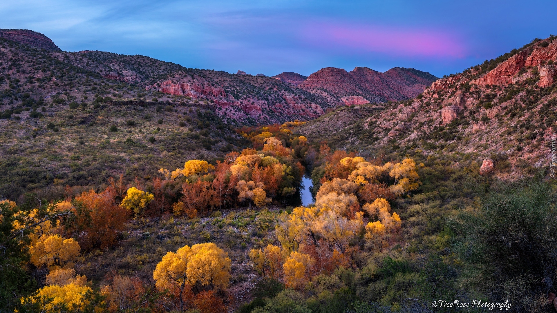 Edytor tapety: Rzeka i jesienna roślinność w kanionie Sycamore