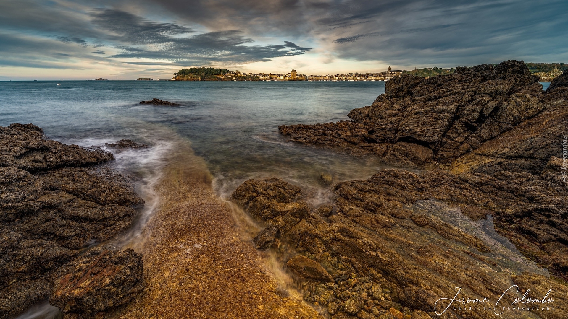 Edytor tapety: Skały i miasto Dinard na wybrzeżu Bretanii