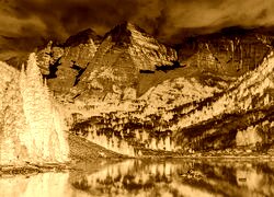 Edytor tapety: Jesienne drzewa nad jeziorem Maroon Lake w Górach Skalistych