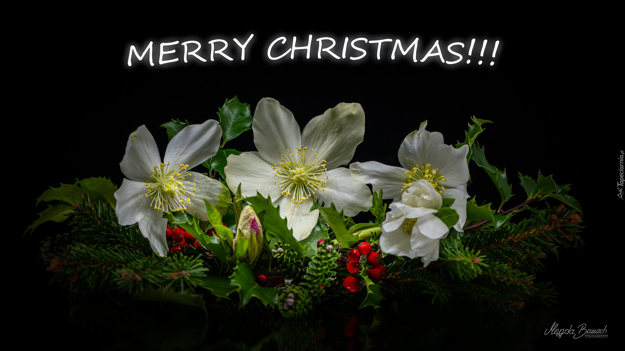 Edytor tapety: Stroik świąteczny obok napisu Merry Christmas