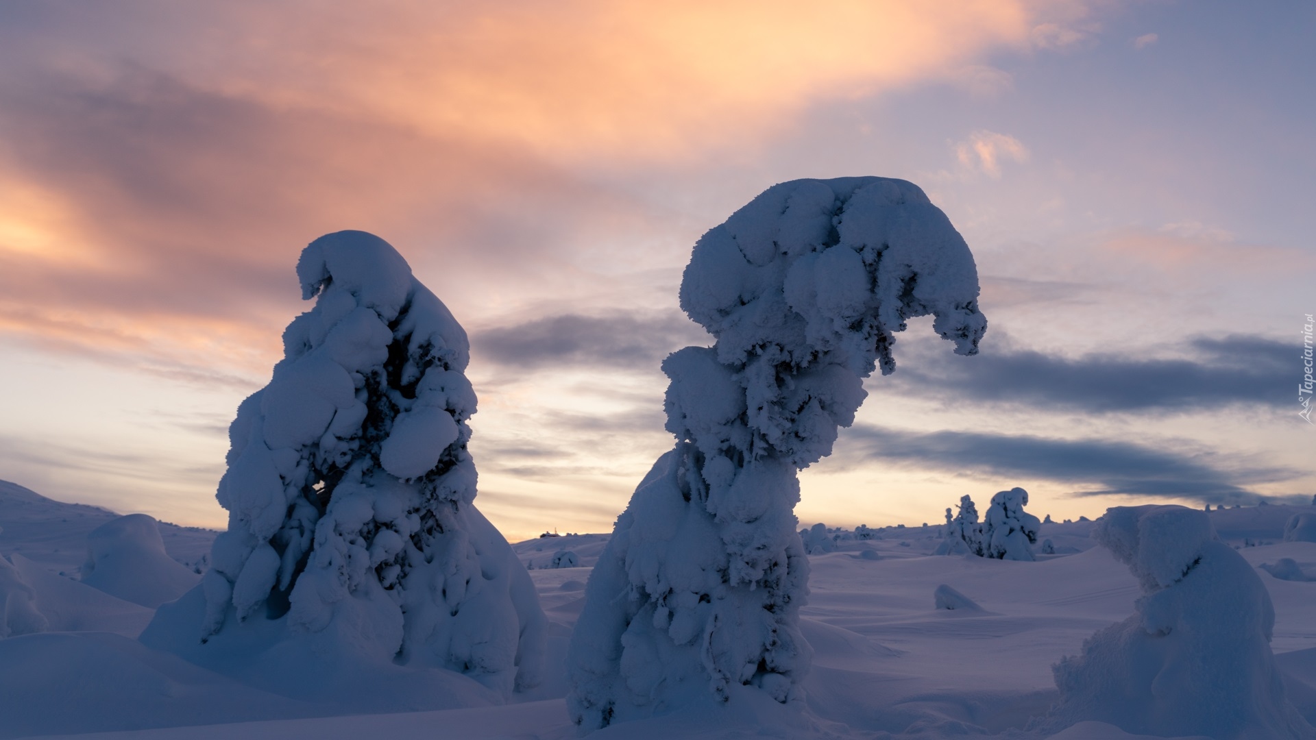 Edytor tapety: Zasypane śniegiem drzewa w zaspach