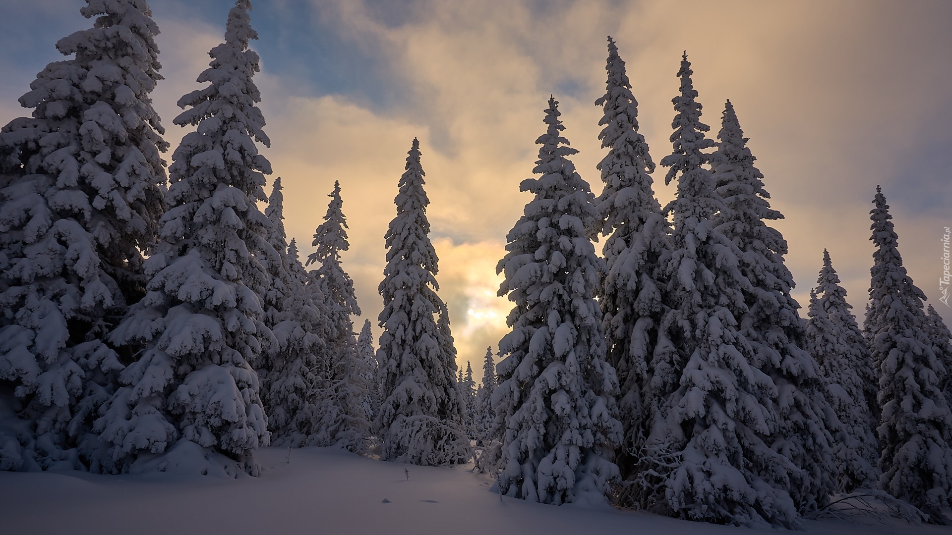Edytor tapety: Drzewa iglaste w śniegu