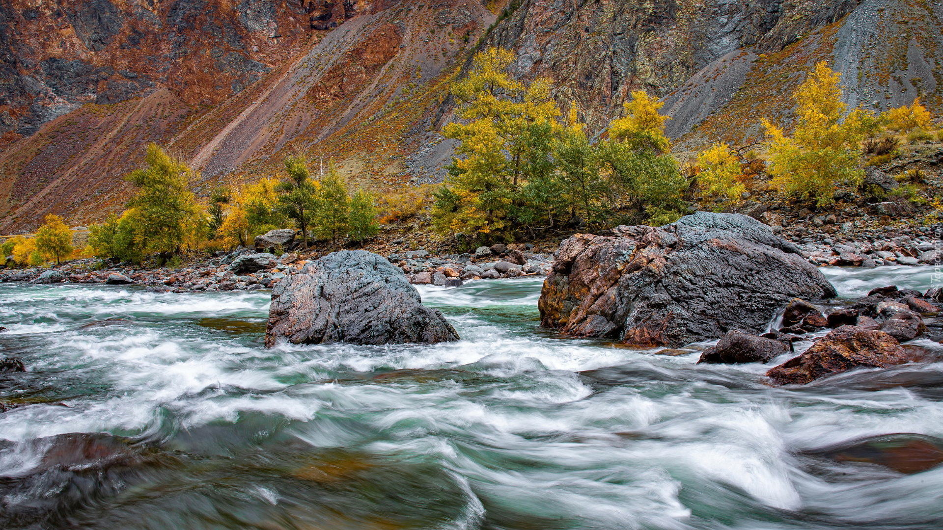 Edytor tapety: Kamienie w rzece Czułyszman