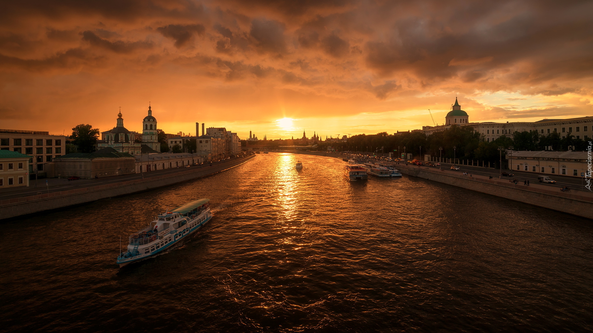 Edytor tapety: Statki na rzece Moskwa o zachodzie słońca