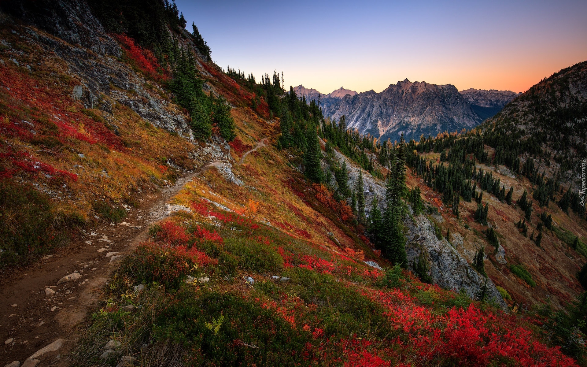 Edytor tapety: Zbocza gór porośnięte kolorową roślinnością