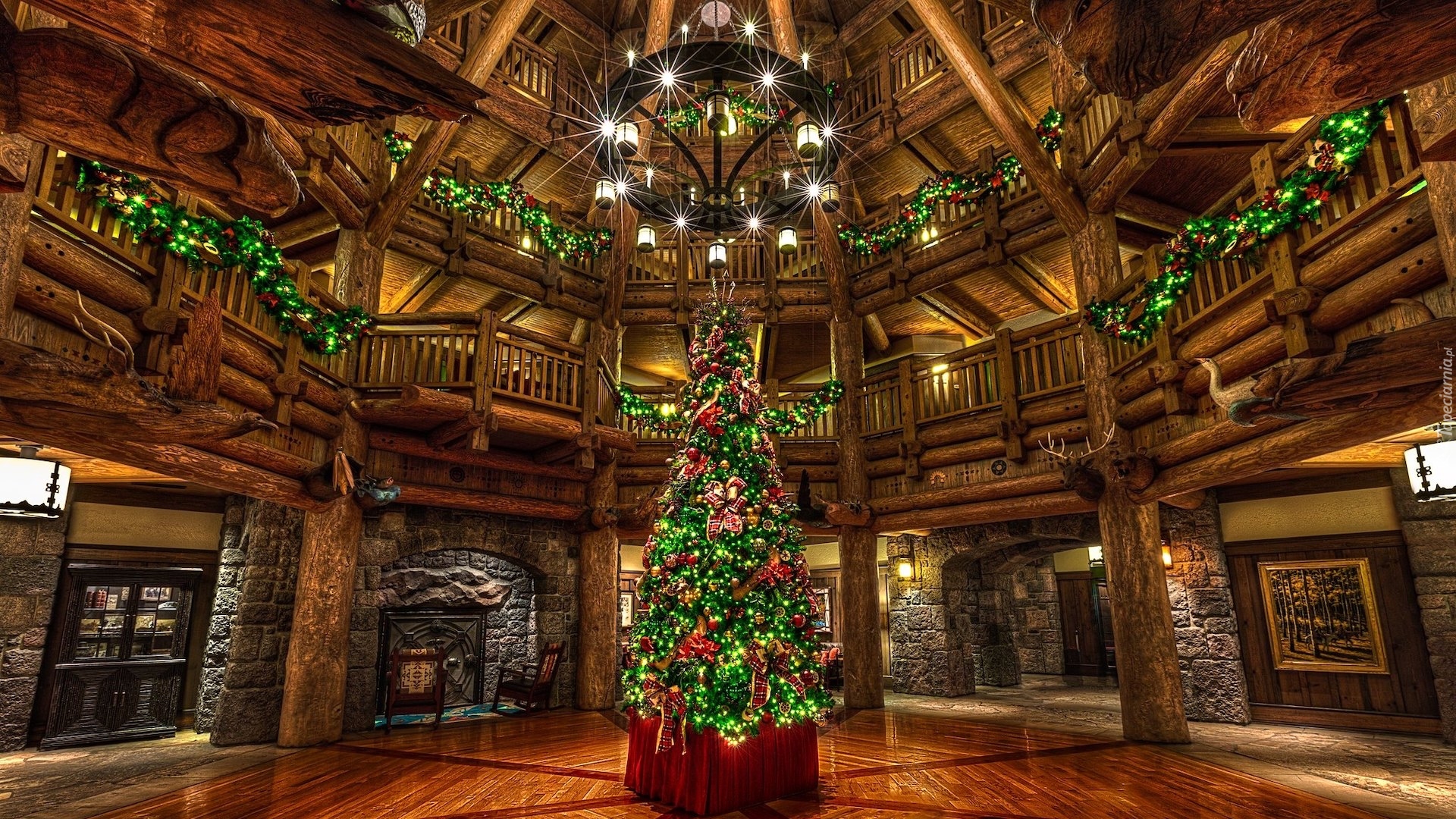 Edytor tapety: Choinka w holu Hotelu Disneys Wilderness Lodge