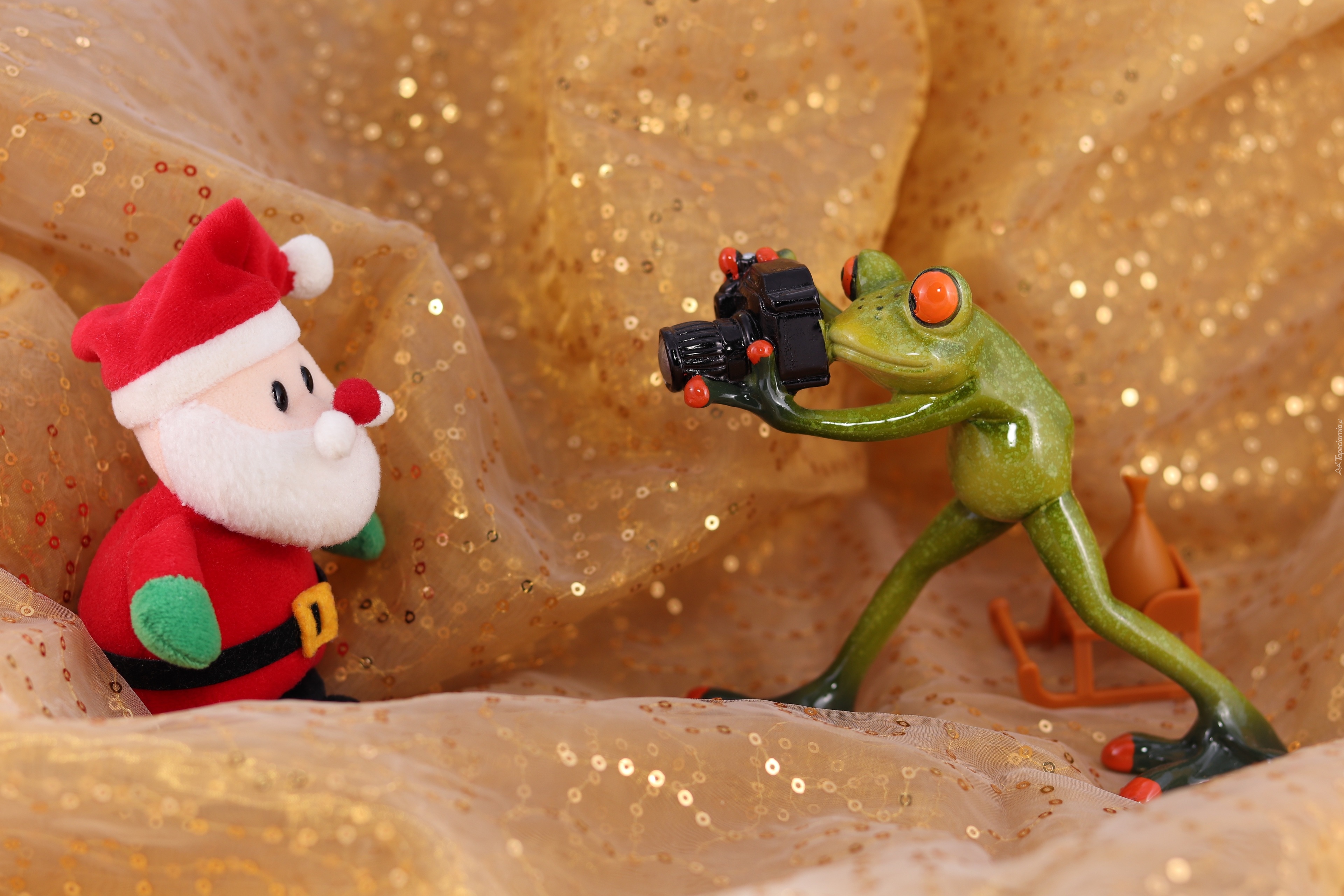 Edytor tapety: Żaba robiąca zdjęcie Mikołajowi