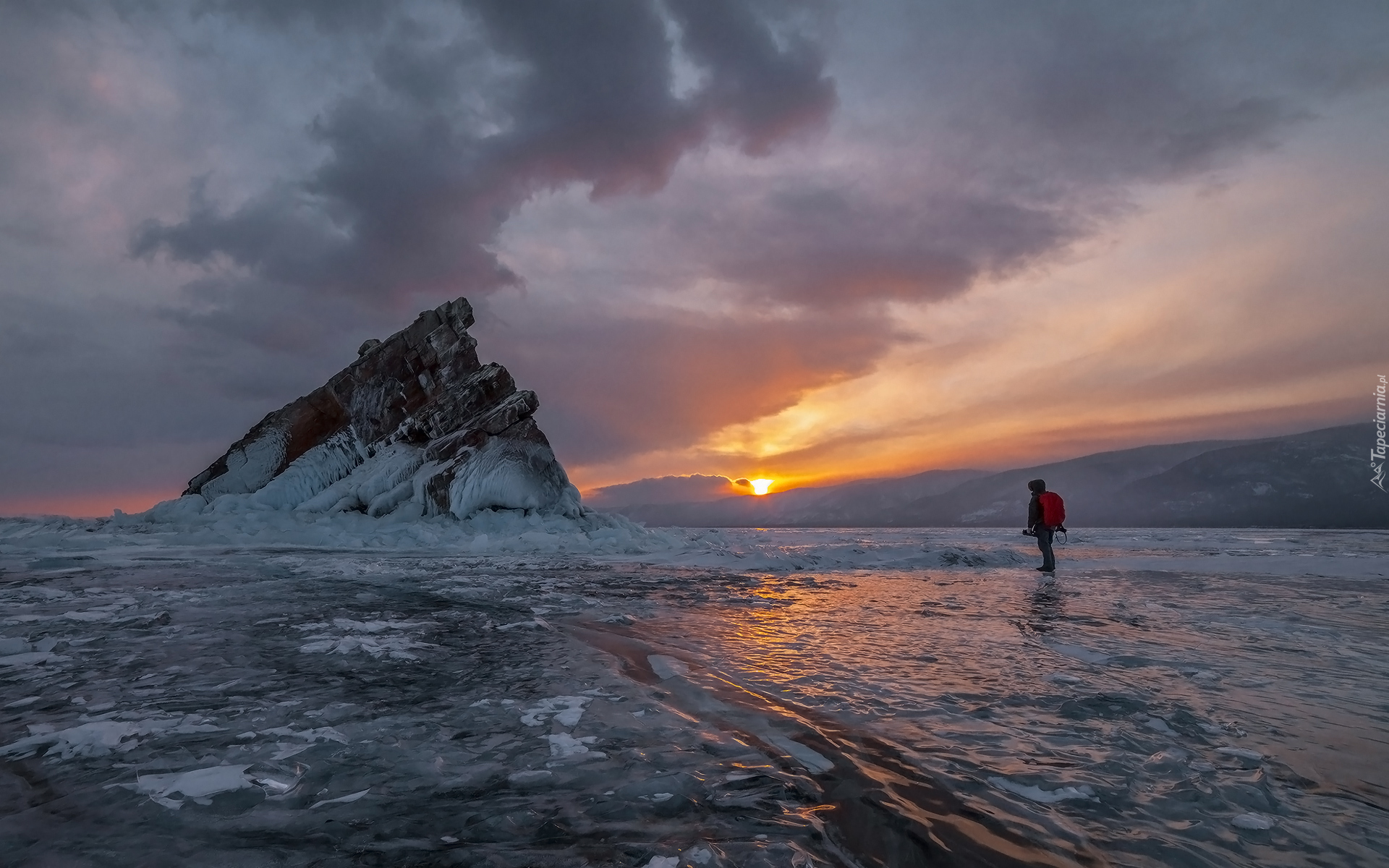 Edytor tapety: Człowiek obok skały na zamarzniętym Jeziorze Bajkał