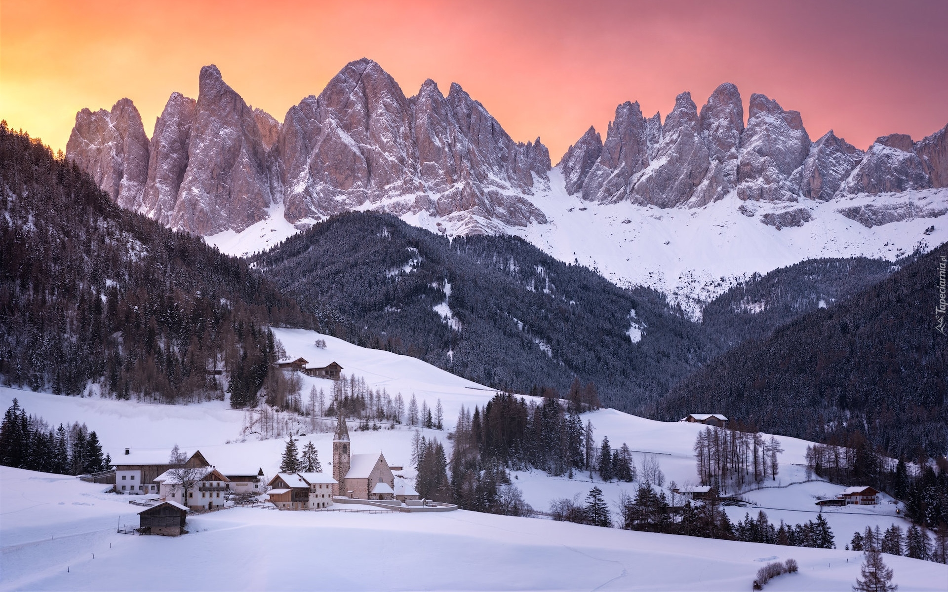 Edytor tapety: Wioska Santa Maddalena w Dolomitach zimą