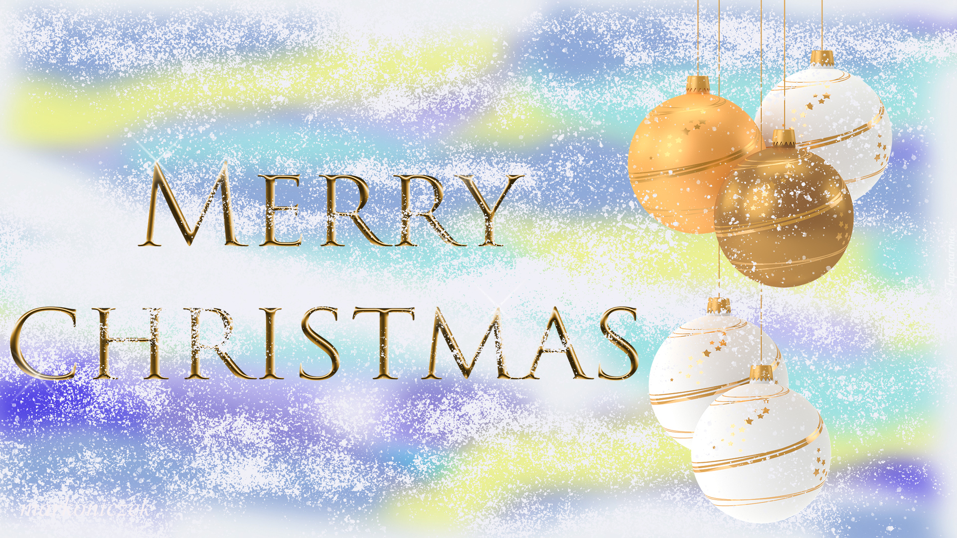 Edytor tapety: Napis Merry Christmas i bombki w 2D