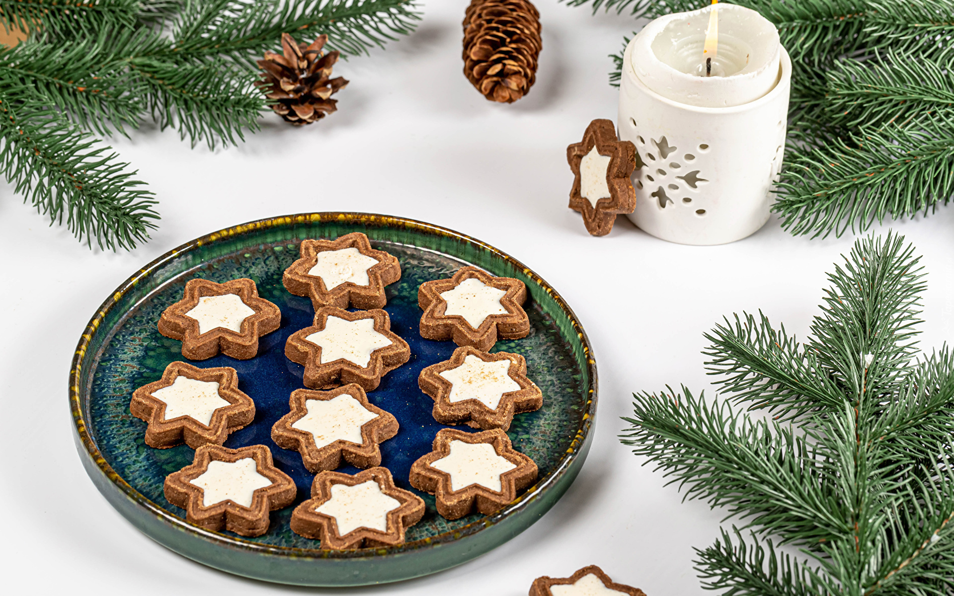 Edytor tapety: Ciasteczka w kształcie gwiazdek obok świecy i gałązek