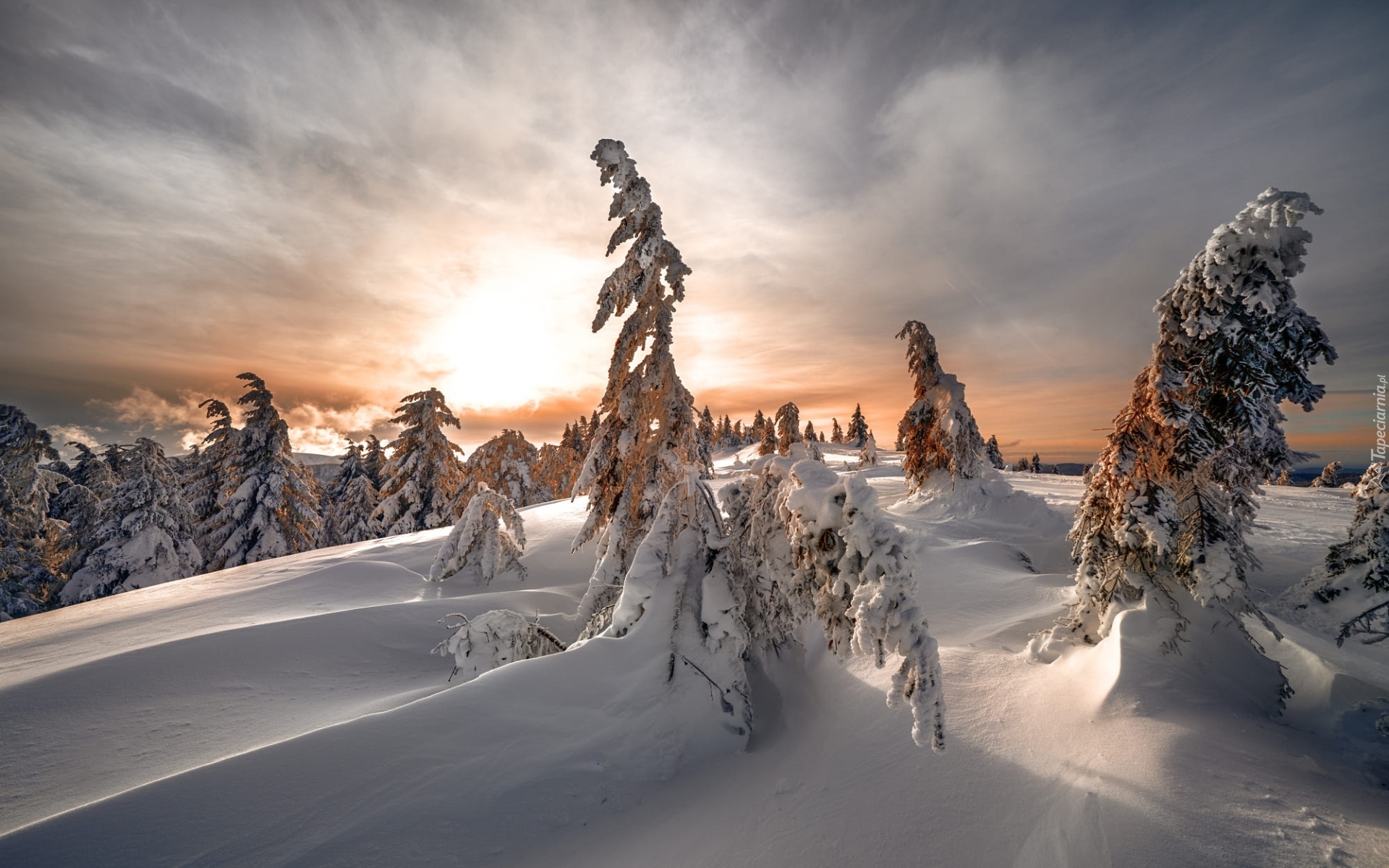 Edytor tapety: Zaśnieżone drzewa w zaspach