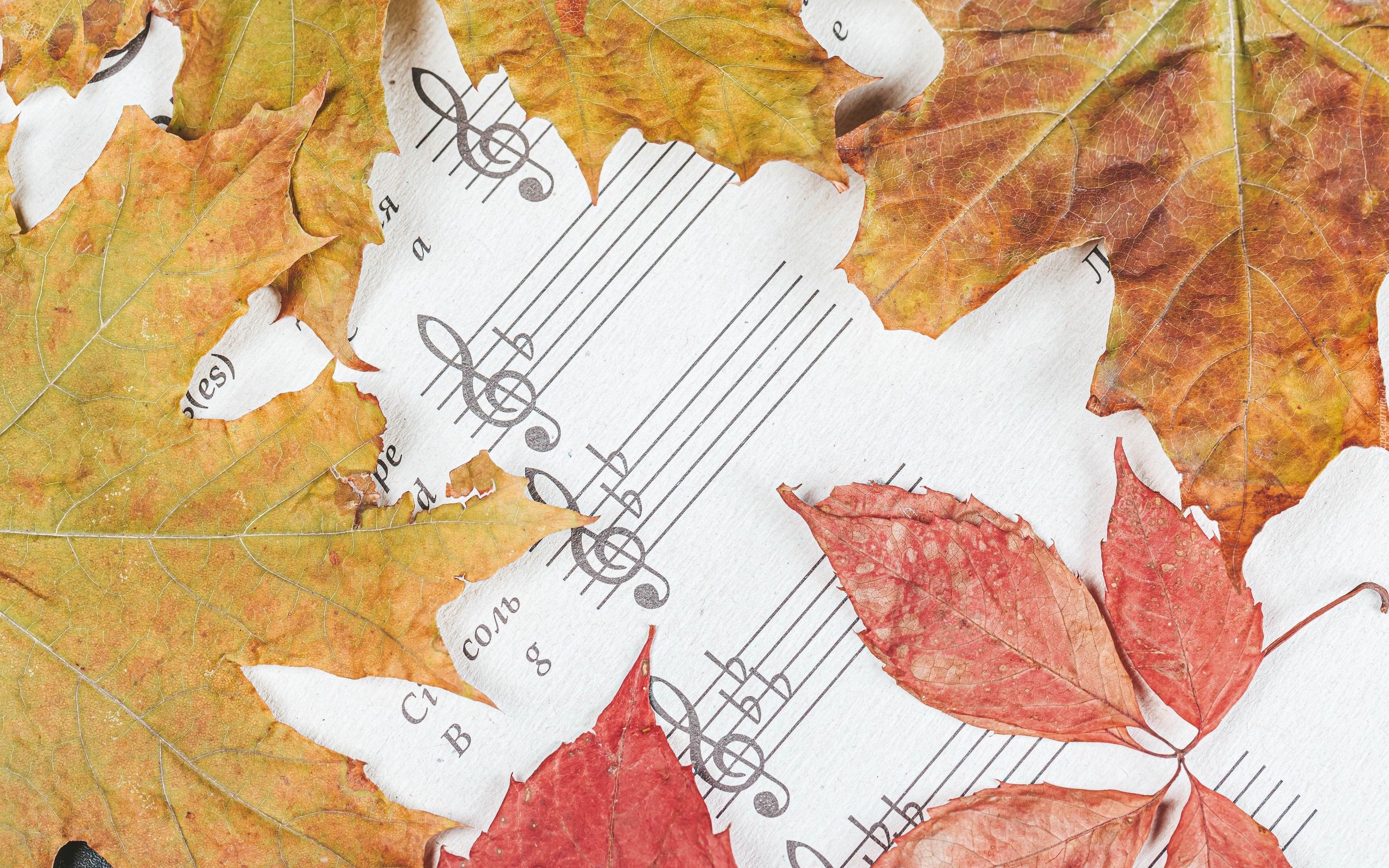 Edytor tapety: Jesienne liście na nutach
