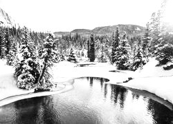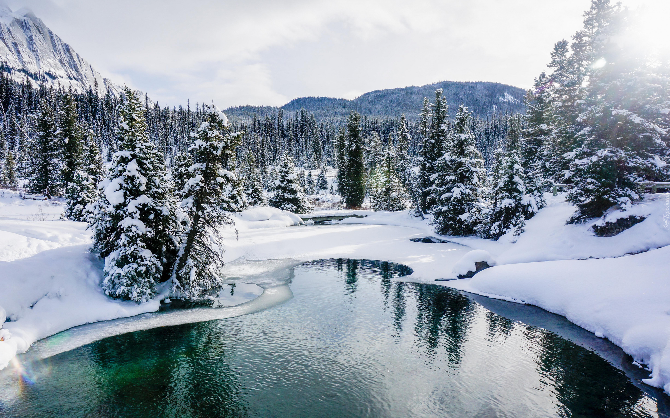 Edytor tapety: Drzewa nad rzeką Johnston Creek zimową porą