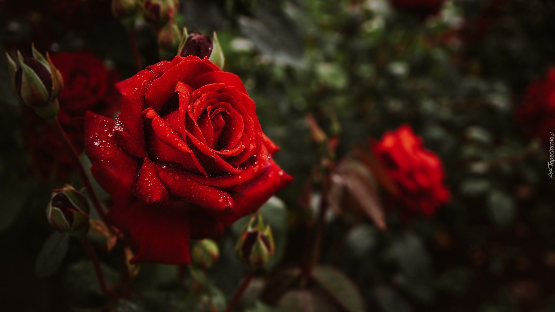 Edytor tapety: Mokra czerwona róża