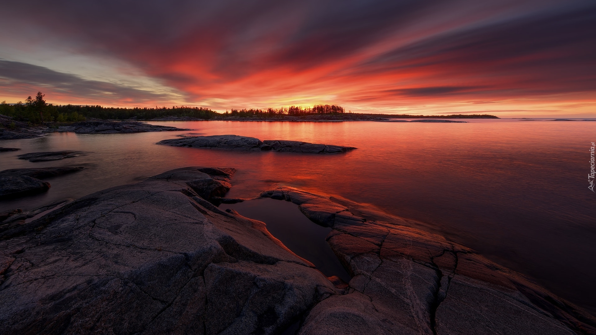 Edytor tapety: Kolorowy zachód słońca nad Jeziorem Ładoga w Rosji
