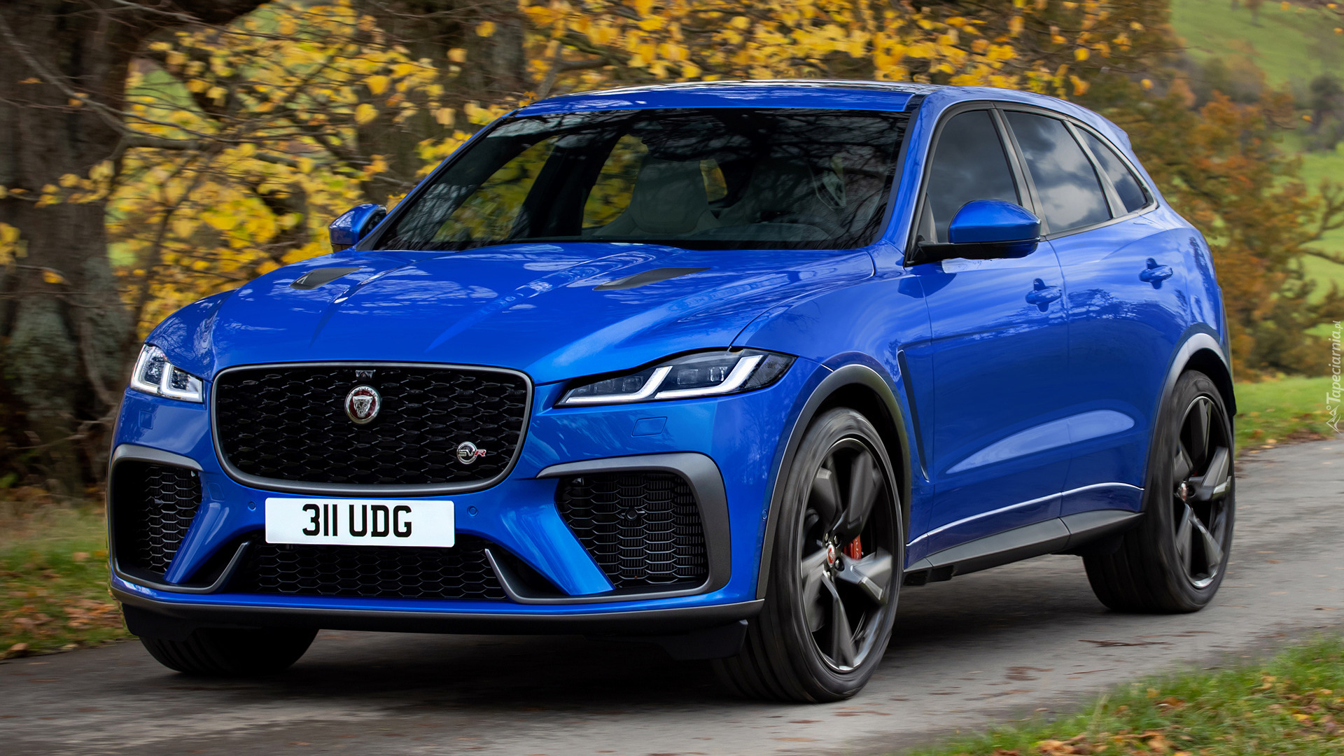 Edytor tapety: Niebieski Jaguar F-Pace przodem