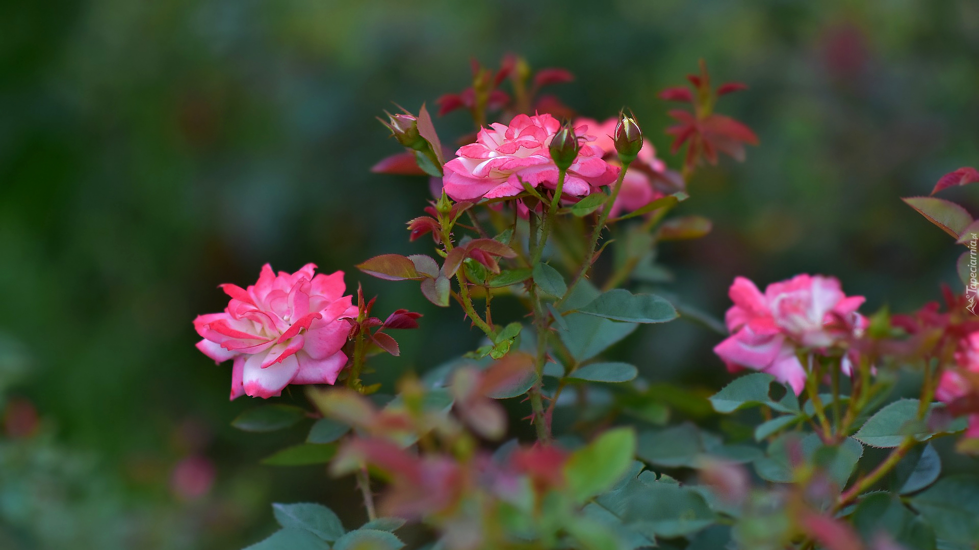 Edytor tapety: Różowe rozkwitnięte róże z pąkami
