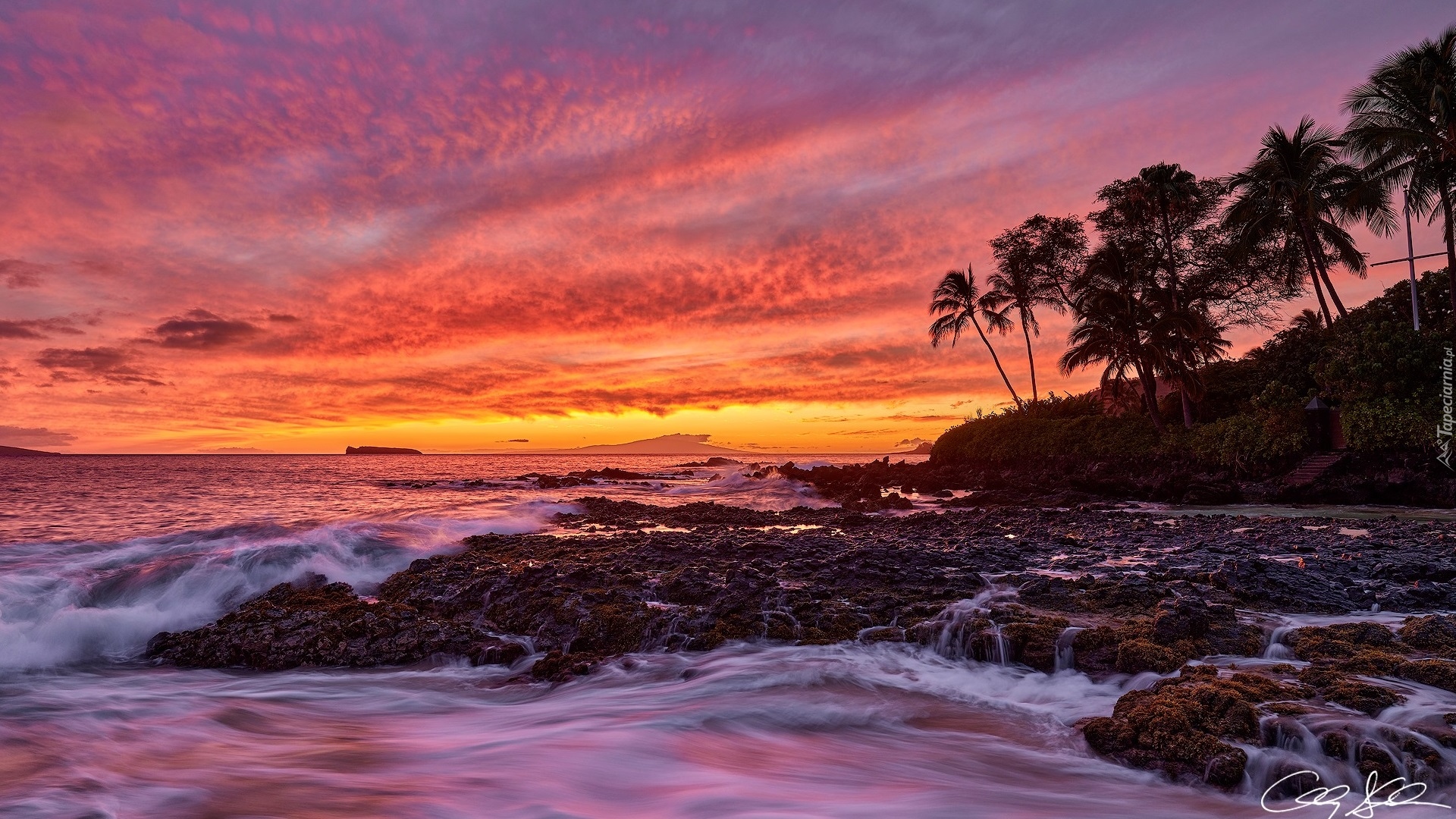 Edytor tapety: Kolorowy zachód słońca nad wyspą Maui na Hawajach