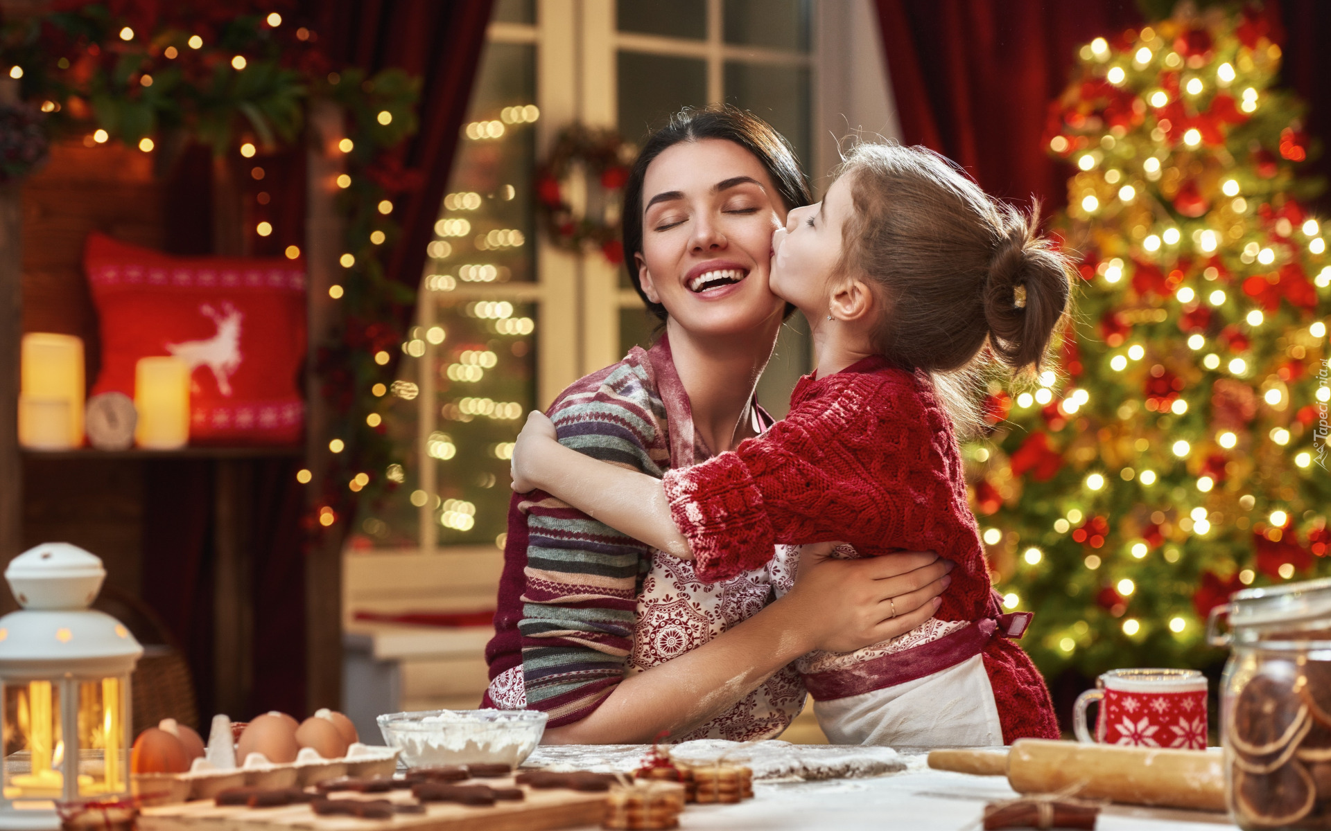 Edytor tapety: Buziak od córki przy pieczeniu ciasteczek