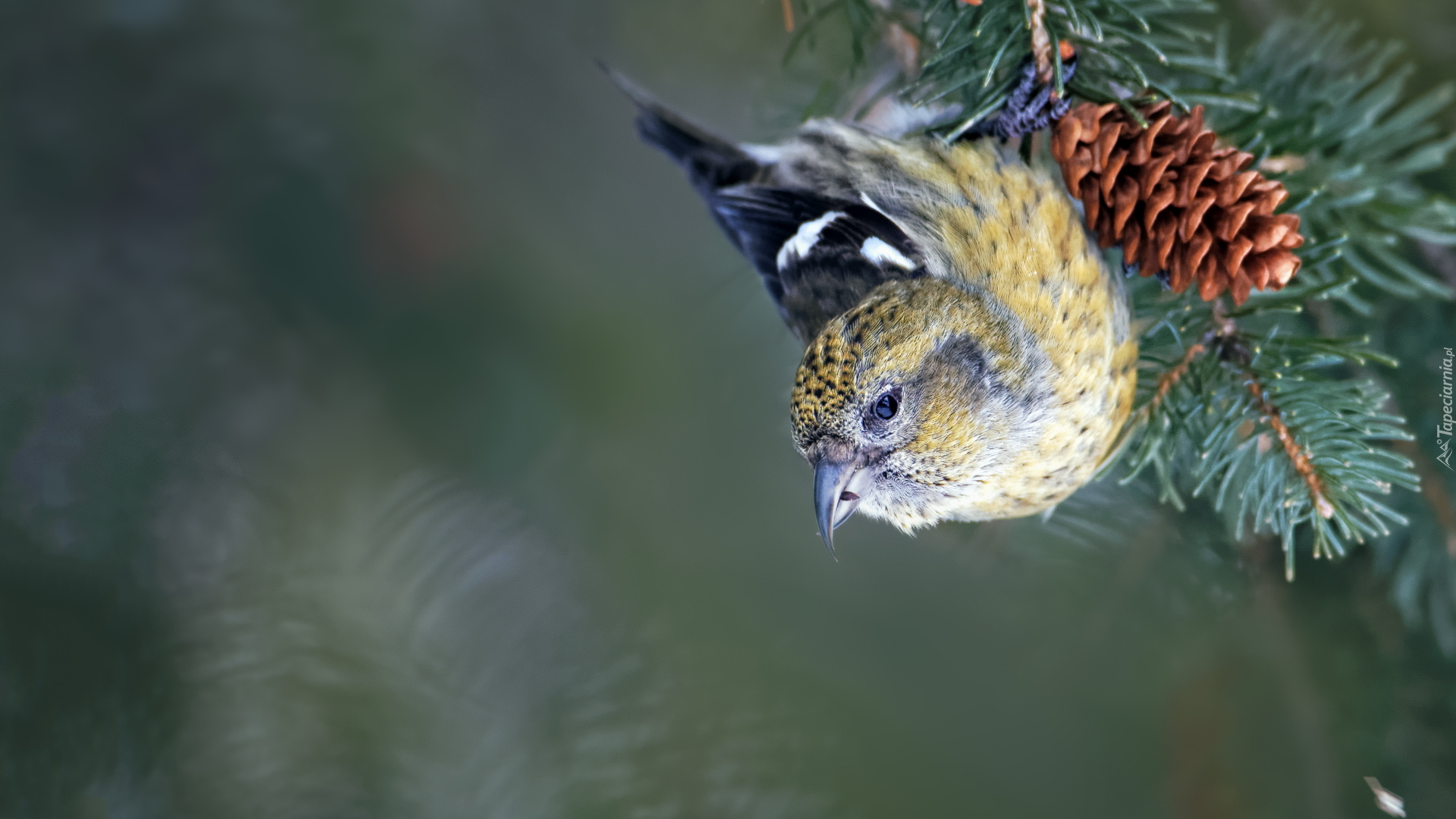 Edytor tapety: Samica krzyżodzioba modrzewiowego