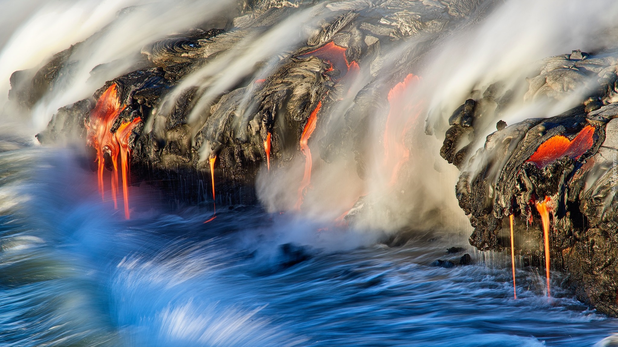 Edytor tapety: Rozżarzona lawa spływająca do rzeki