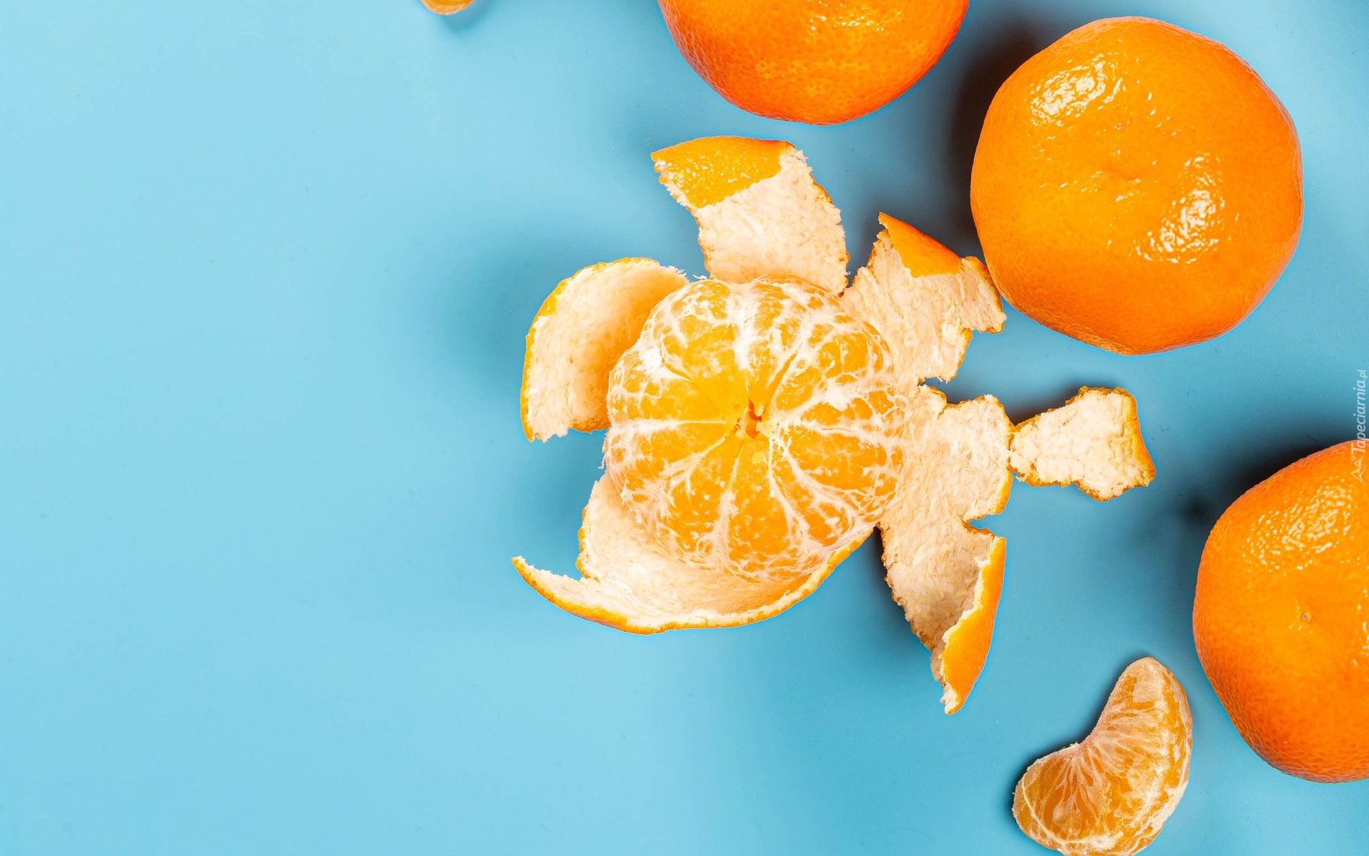 Edytor tapety: Mandarynki na niebieskim tle