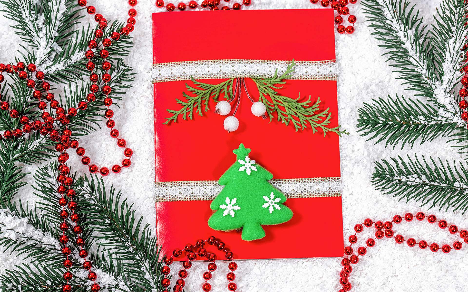 Edytor tapety: Prezent na śniegu wśród świerkowych gałązek
