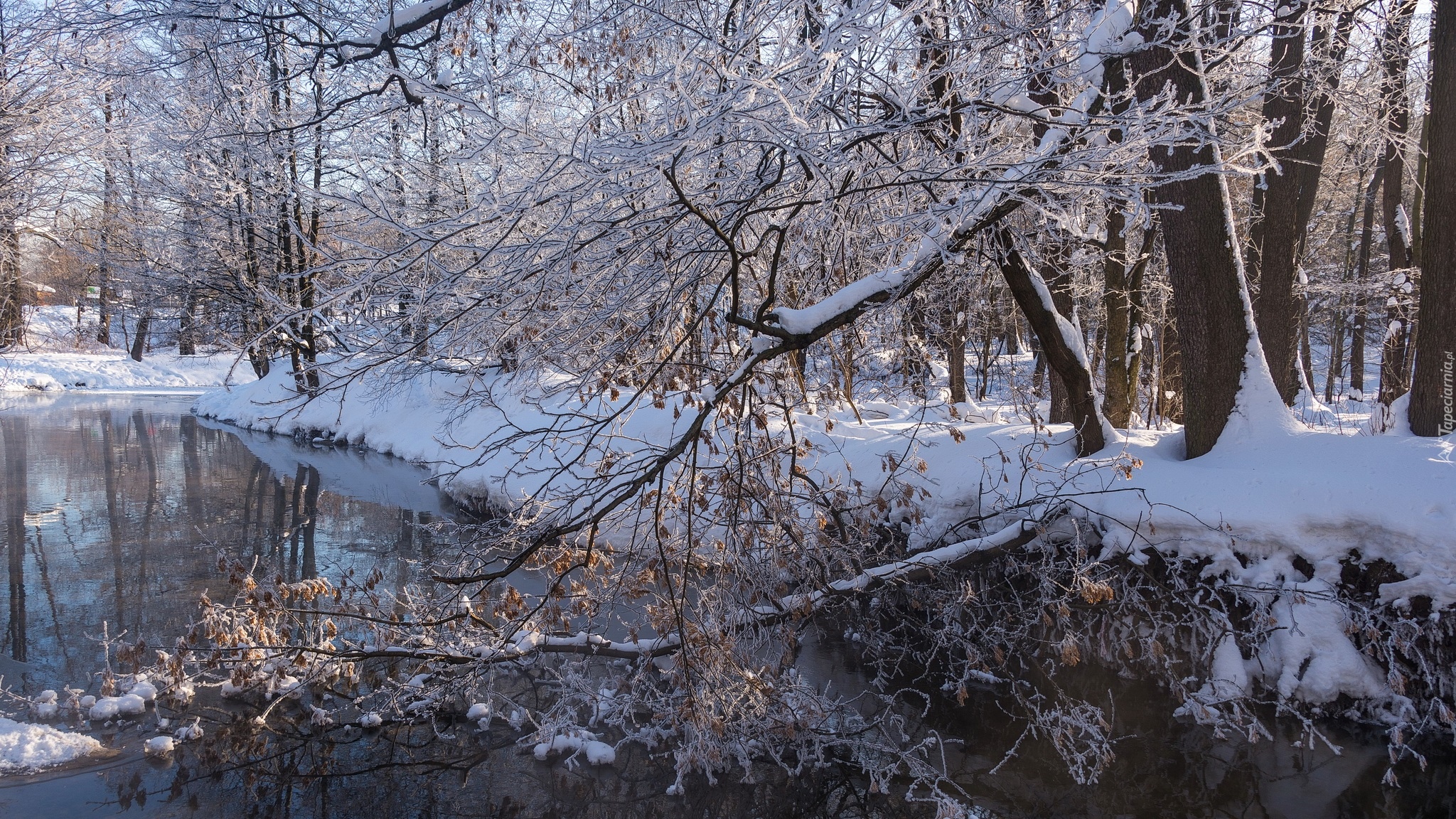 Edytor tapety: Ośnieżone gałęzie nad rzeką