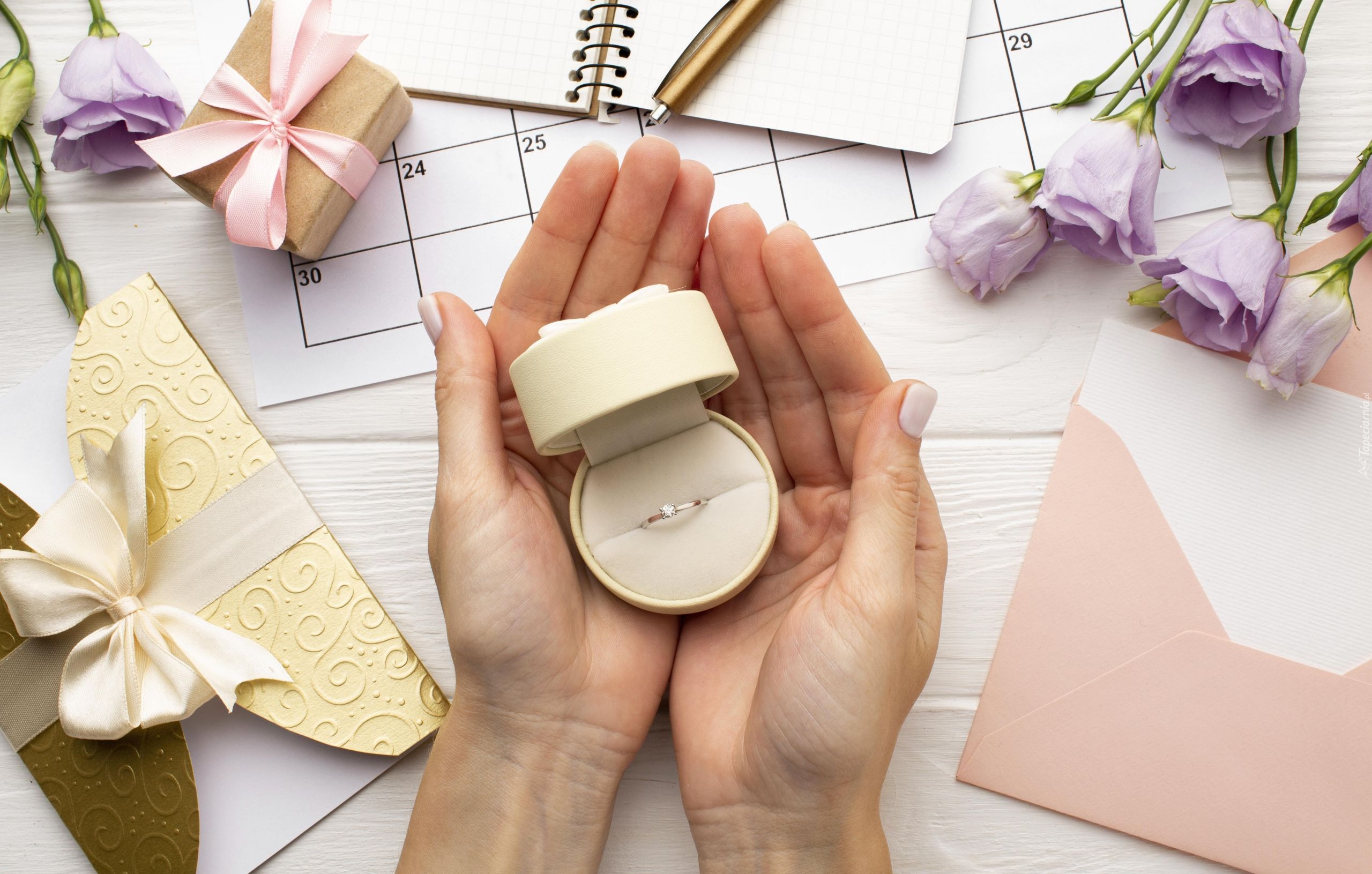 Edytor tapety: Pudełko z pierścionkiem w dłoniach