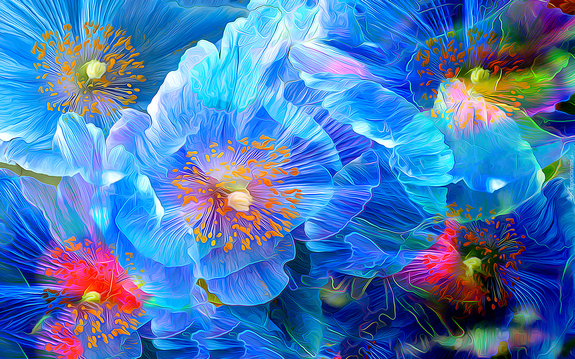 Edytor tapety: Niebieskie kwiaty z pręcikami w grafice