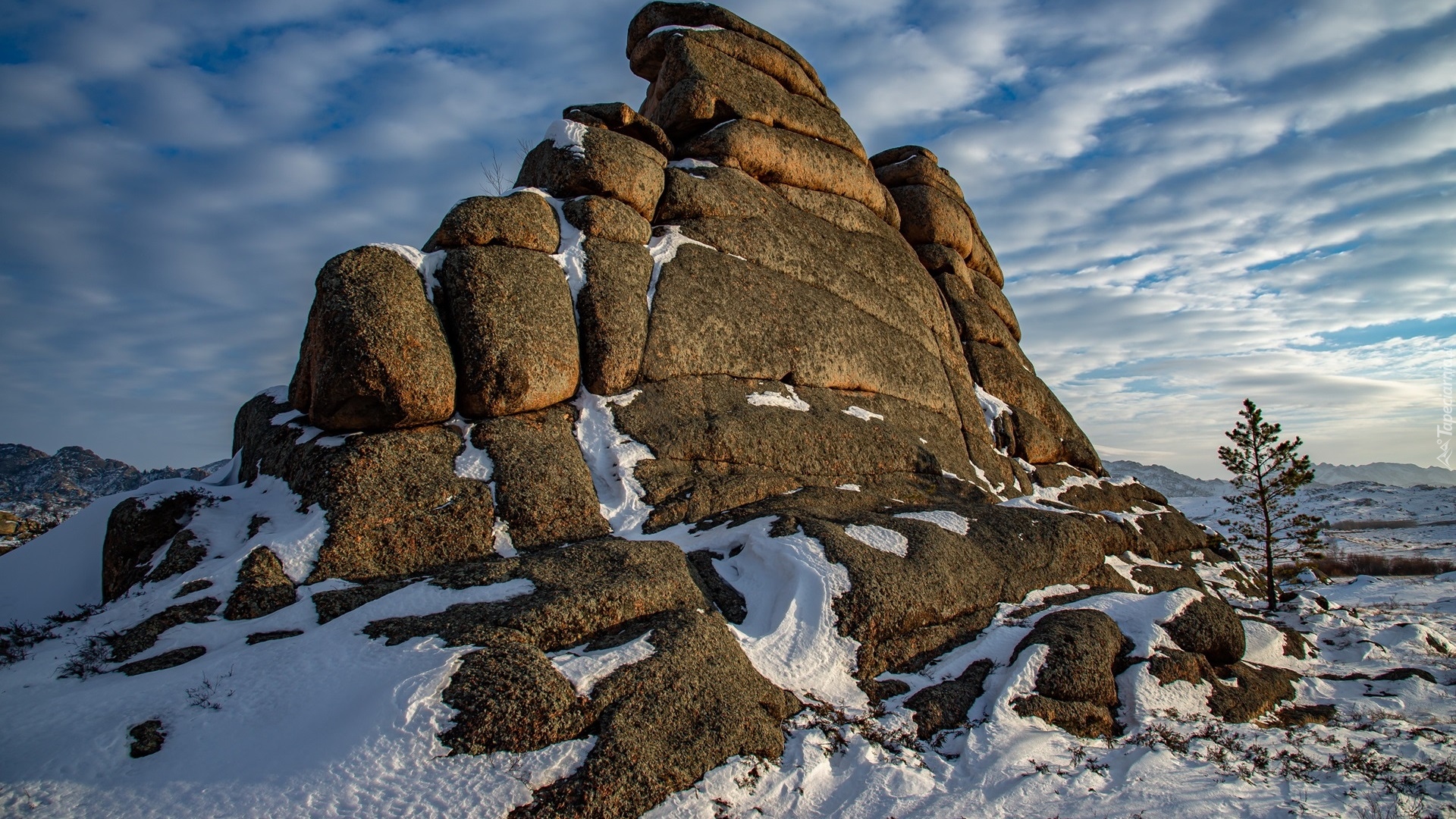 Edytor tapety: Skała otoczona śniegiem