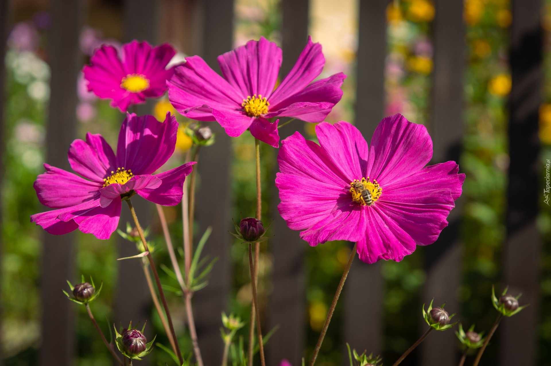 Edytor tapety: Różowa kosmea z pąkami w zbliżeniu