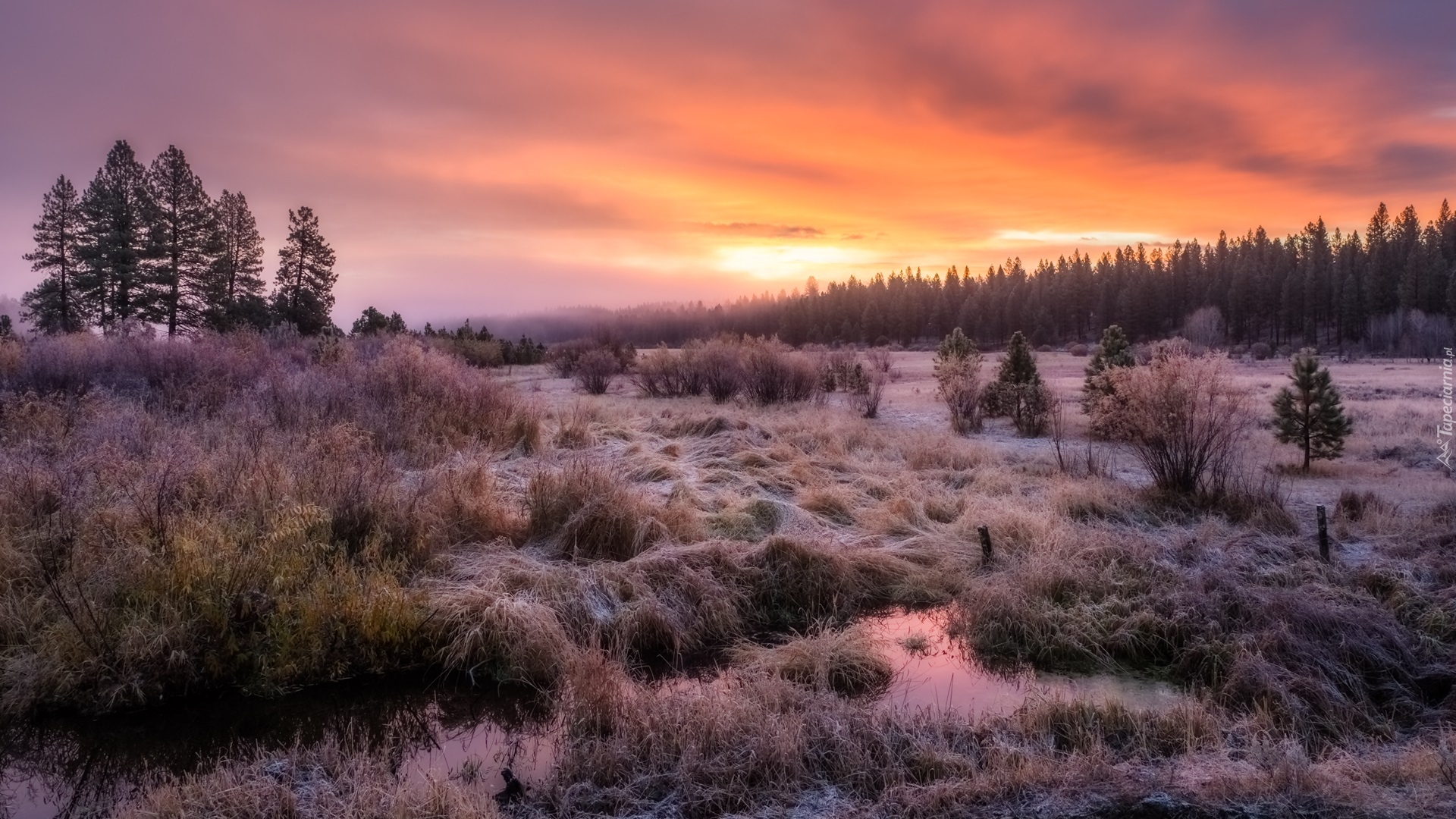 Edytor tapety: Oszronione trawy i krzewy w porannej mgle