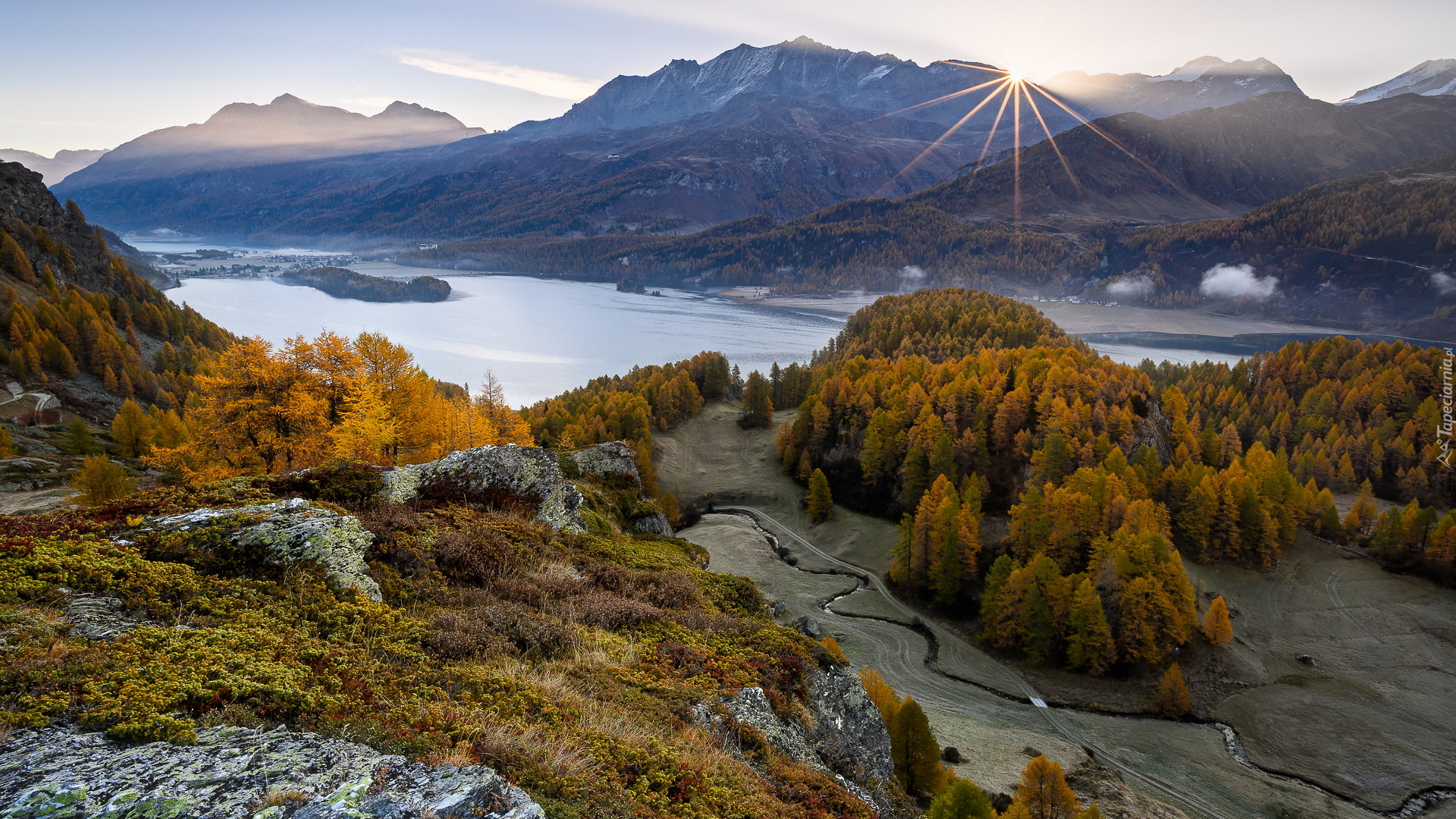 Edytor tapety: Lasy i jezioro w górskiej dolinie