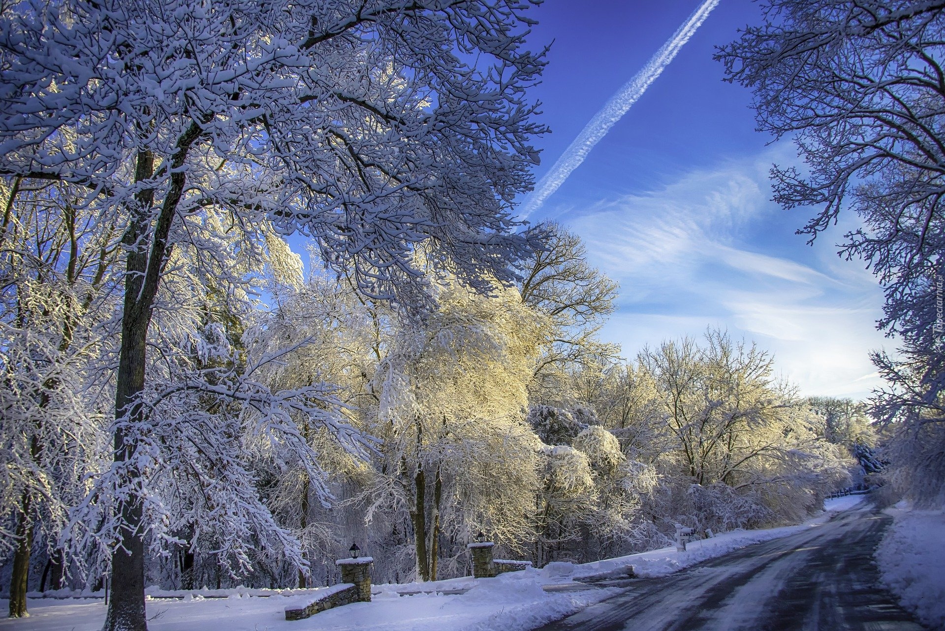 Edytor tapety: Ośnieżone gałęzie drzew przy drodze