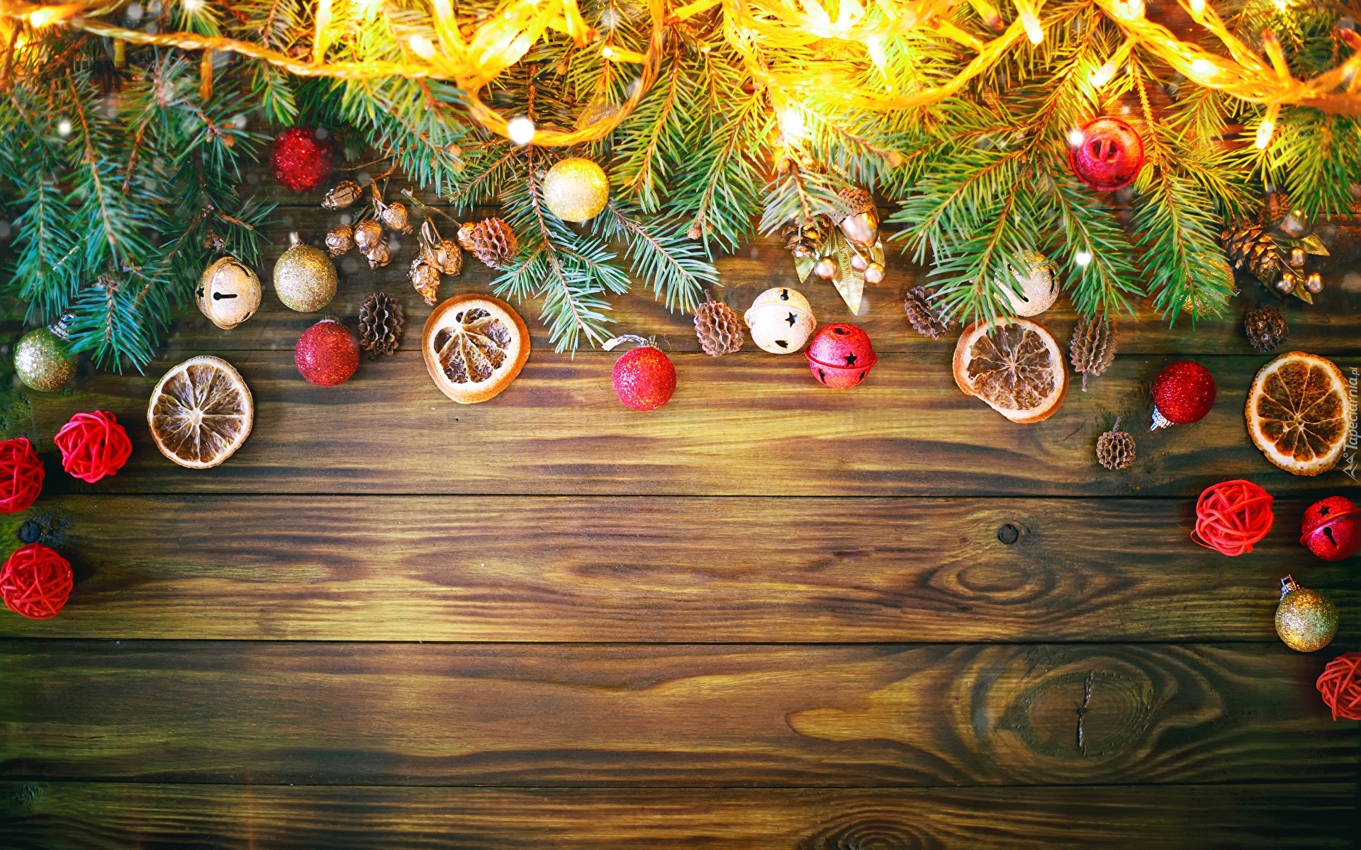 Edytor tapety: Dekoracja świąteczna oświetlona lampkami na deskach